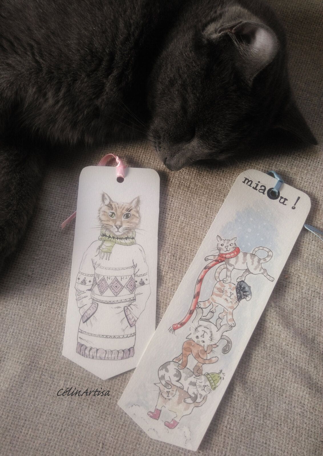 Et pour bouquiner au coin du feu, des marque-pages "chats en hiver"!